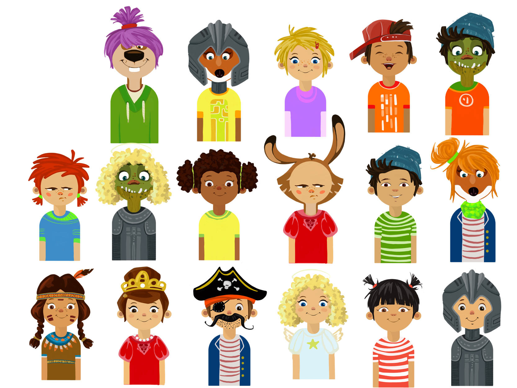 Avatare: Der Spieler der App wählt seine Kleidung, Gesicht, Frisur/Mütze im Mix/Max Prinzip